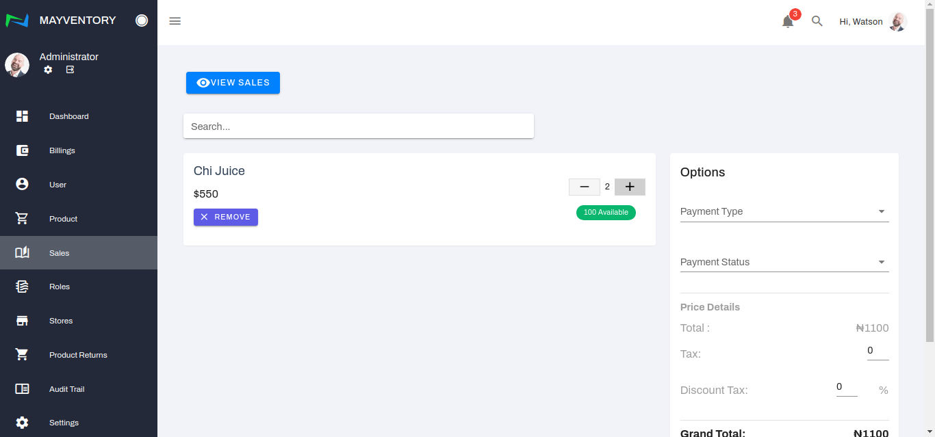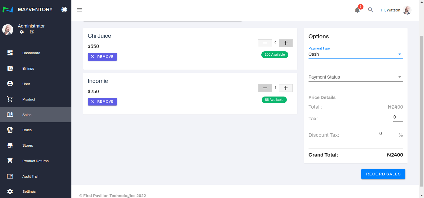 Once satisfied with all the inputs, click on Record Sales to register the sale.