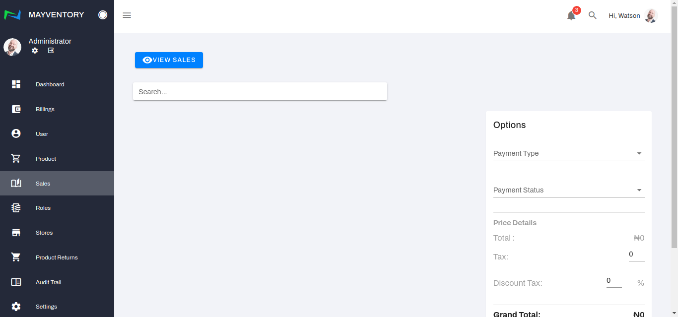 Click on View Sales and a new page containing a list of recorded sales comes up